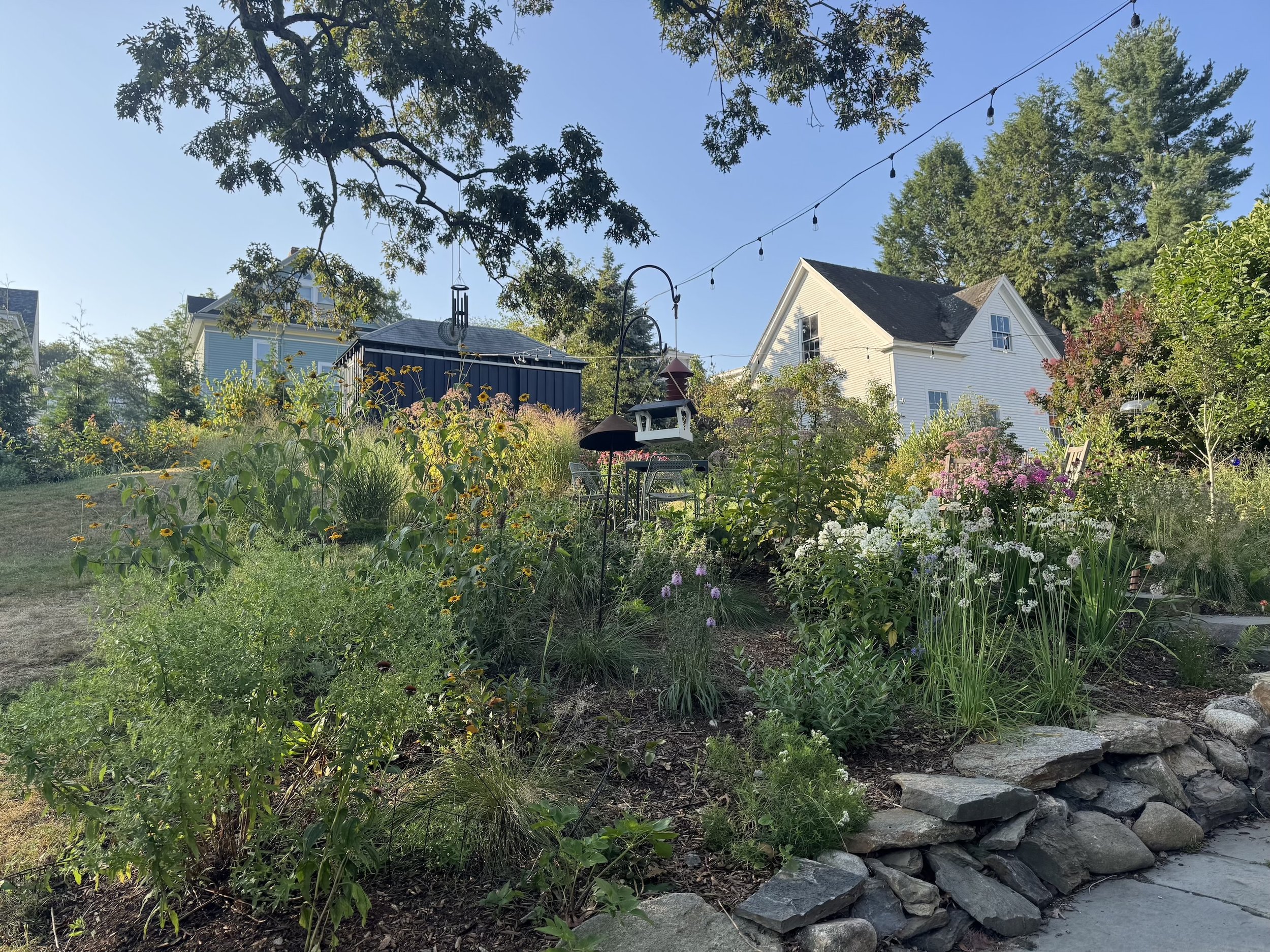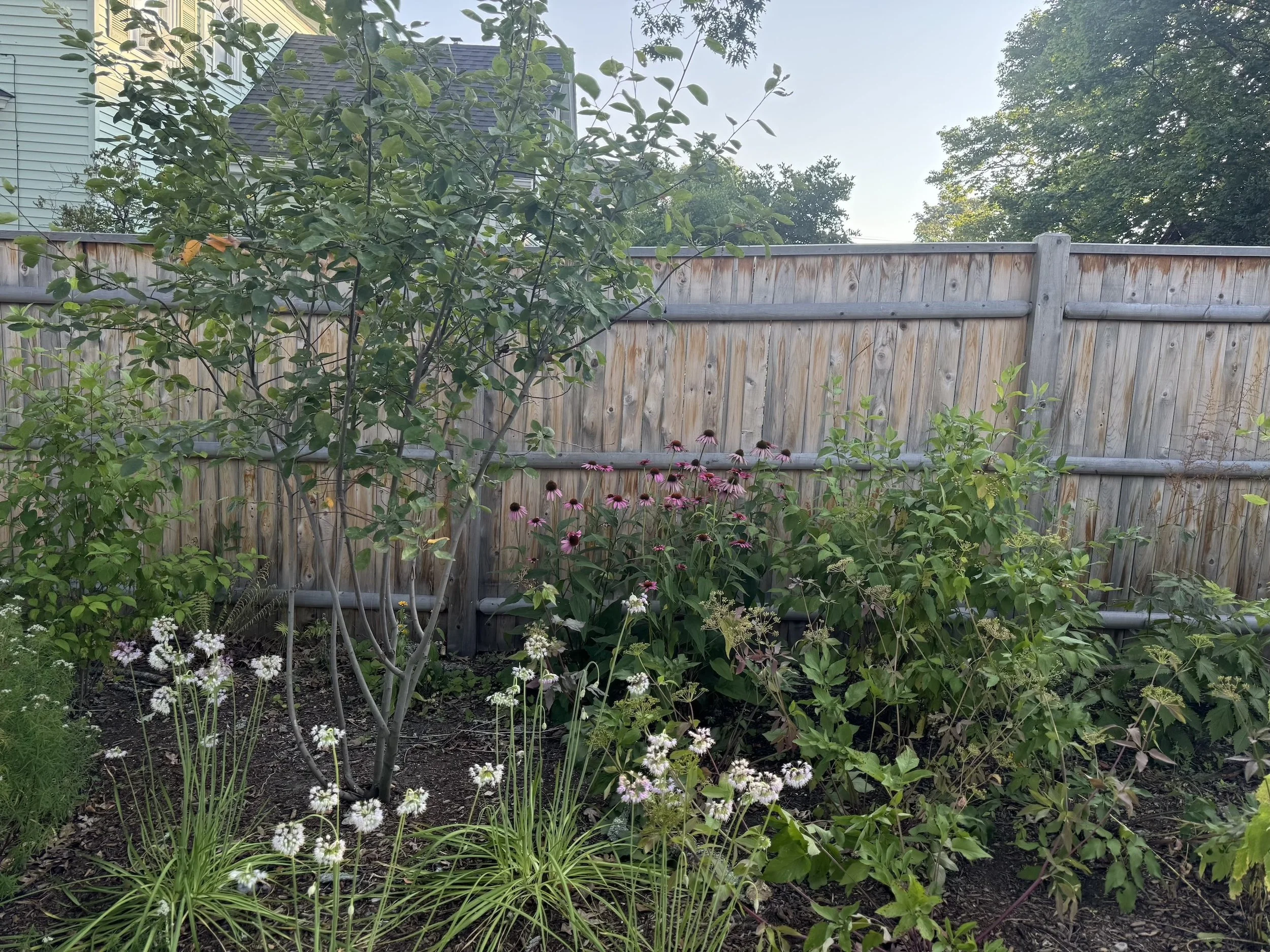 Designed in 2023 and installed in 2024, these gardens are already filling in beautifully. The clients wanted more color, texture, and native plants throughout their landscape—so we brought that vision to life. The backyard design works gracefully around two magnificent oak trees, a tree house, a patio, and a hot tub, creating a cohesive and inviting outdoor space. The clients also extended the garden into their hellstrip, planting resilient native species along the sidewalk to enhance curb appeal and ecological value.
